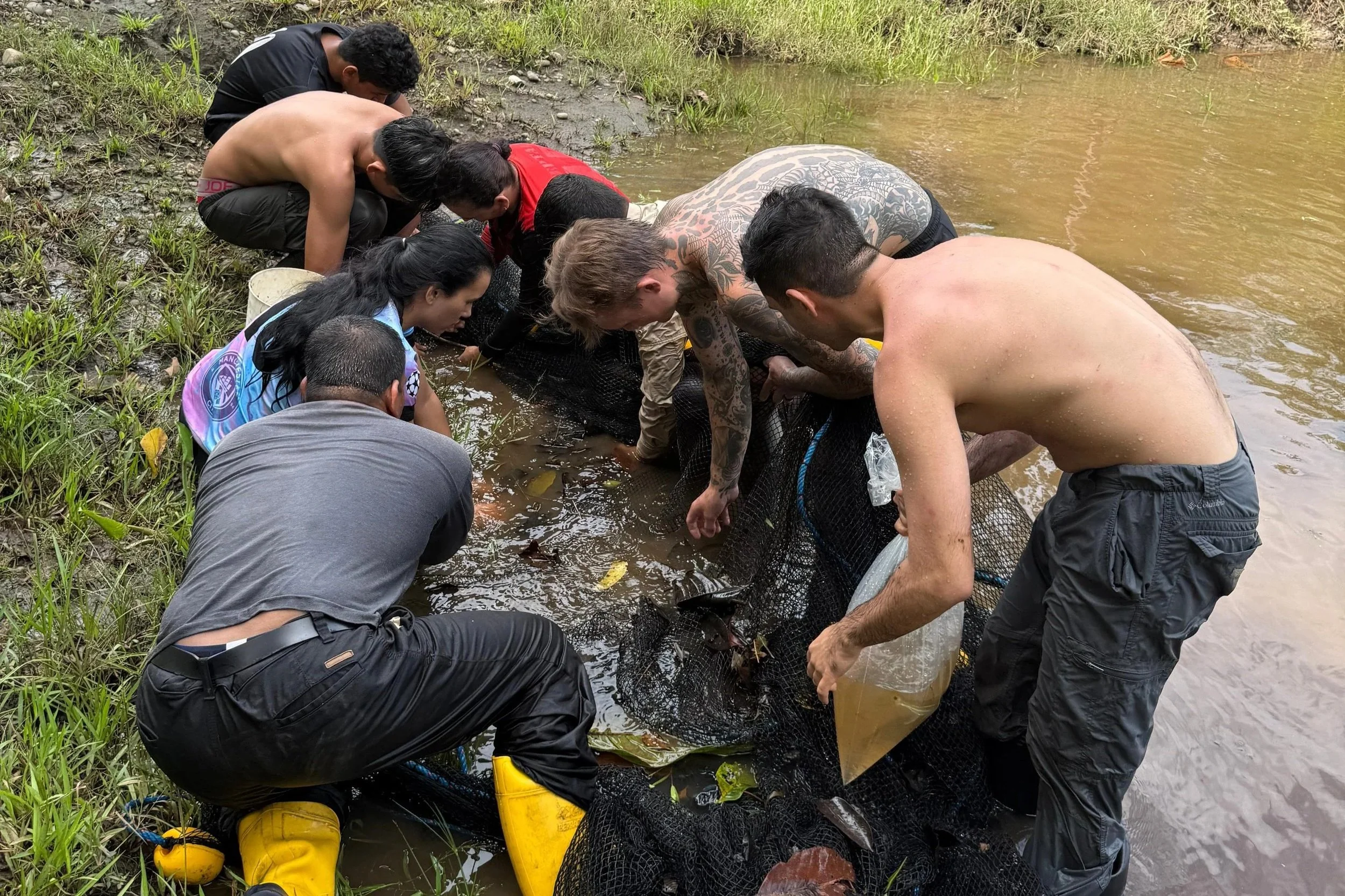 Harry Turner & Nick Volpe working with community members in search of rare fish species